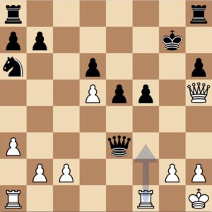 Mit Tf3 Dg5 Tg3 erntete Chris die Früchte seines Opfers. Es folgte Kf6 Txg5 hxg5 und der Rückzug Df3 vergab leider schon den ganzen Vorteil. Mit dem Tempo g4 kann schwarz die Stellung ausgleichen. Direkt De2 hätte dagegen eine Gewinnstellung ermöglicht, da der Springer so nicht das starke Feld e4 erreicht. Aber die Kleinigkeiten waren eben über das ganze Wochenende nicht auf unserer Seite.