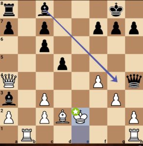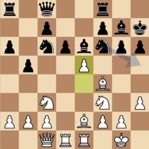 Mit der Aufgabe des d6 Bauern leitet Moritz hier starkes Gegenspiel ein. Letztlich nahm der Gegner nicht mal auf d6 zurück, so dass für das starke Läuferpaar nicht mal ein Bauer weniger in Kauf genommen werden musste.
