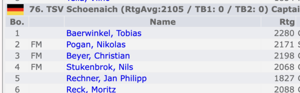 Insgesamt sind wir an Rang 76 von 102 Teilnehmern gesetzt. Es wird also an Herausforderungen und guten Gegnern nicht mangeln.